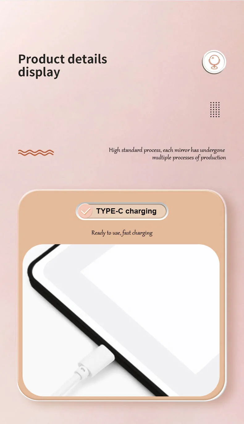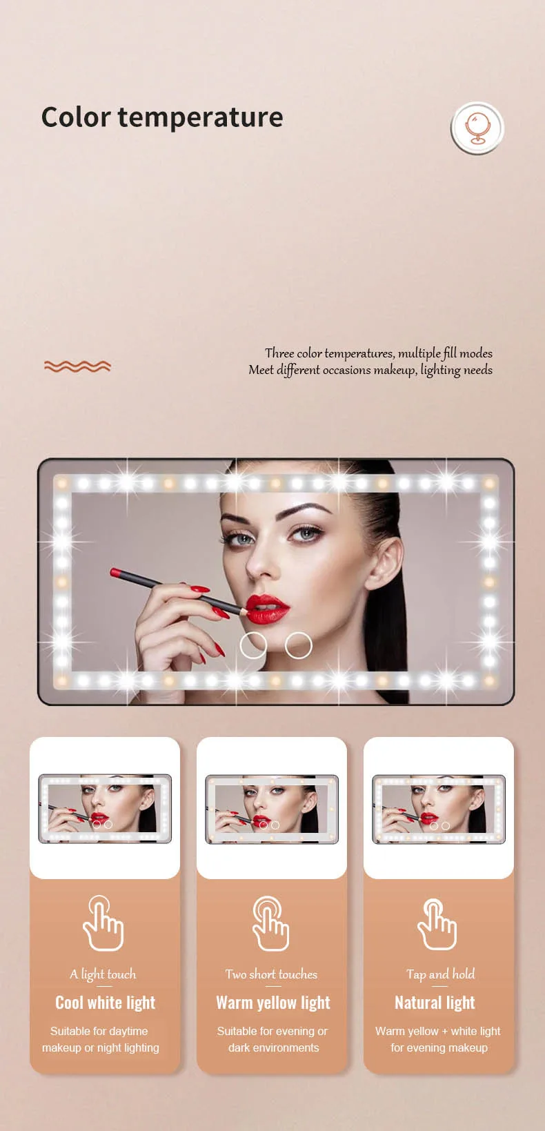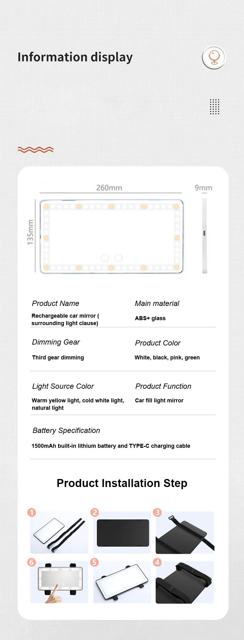 Car Accessories Sun Visor Vanity Mirror Tri-color Touch Screen Dimming Type-C USB Rechargeable Makeup Mirror with LED Light 2024
